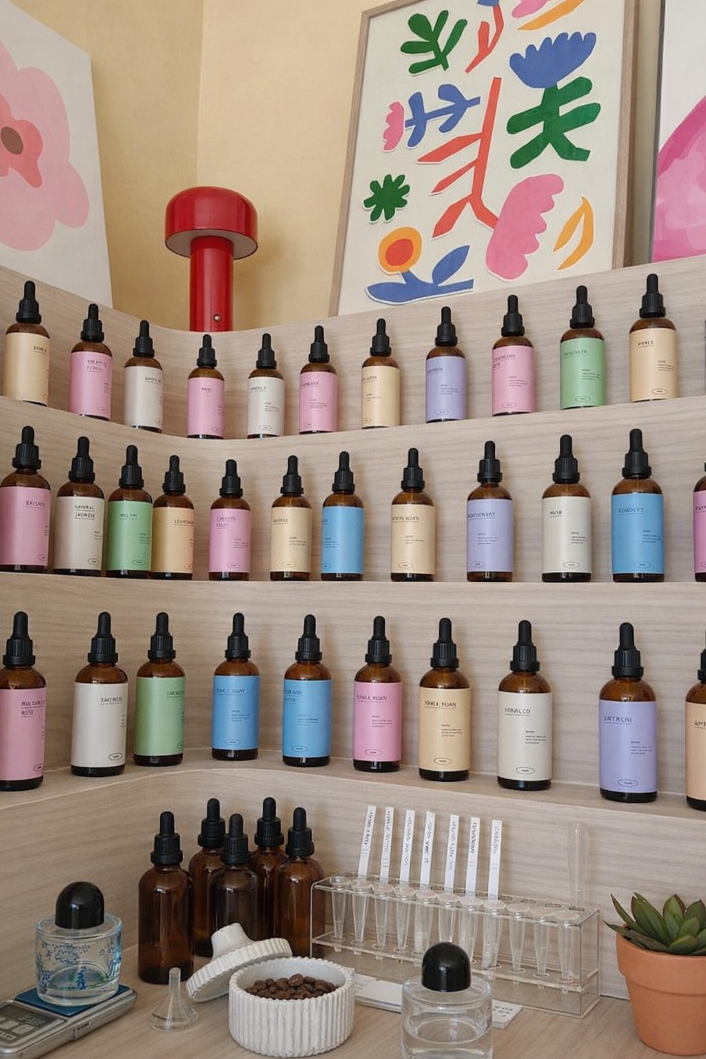 After finding your perfect scent, carefully mix it in a perfume bottle and add alcohol to craft your personalized perfume.